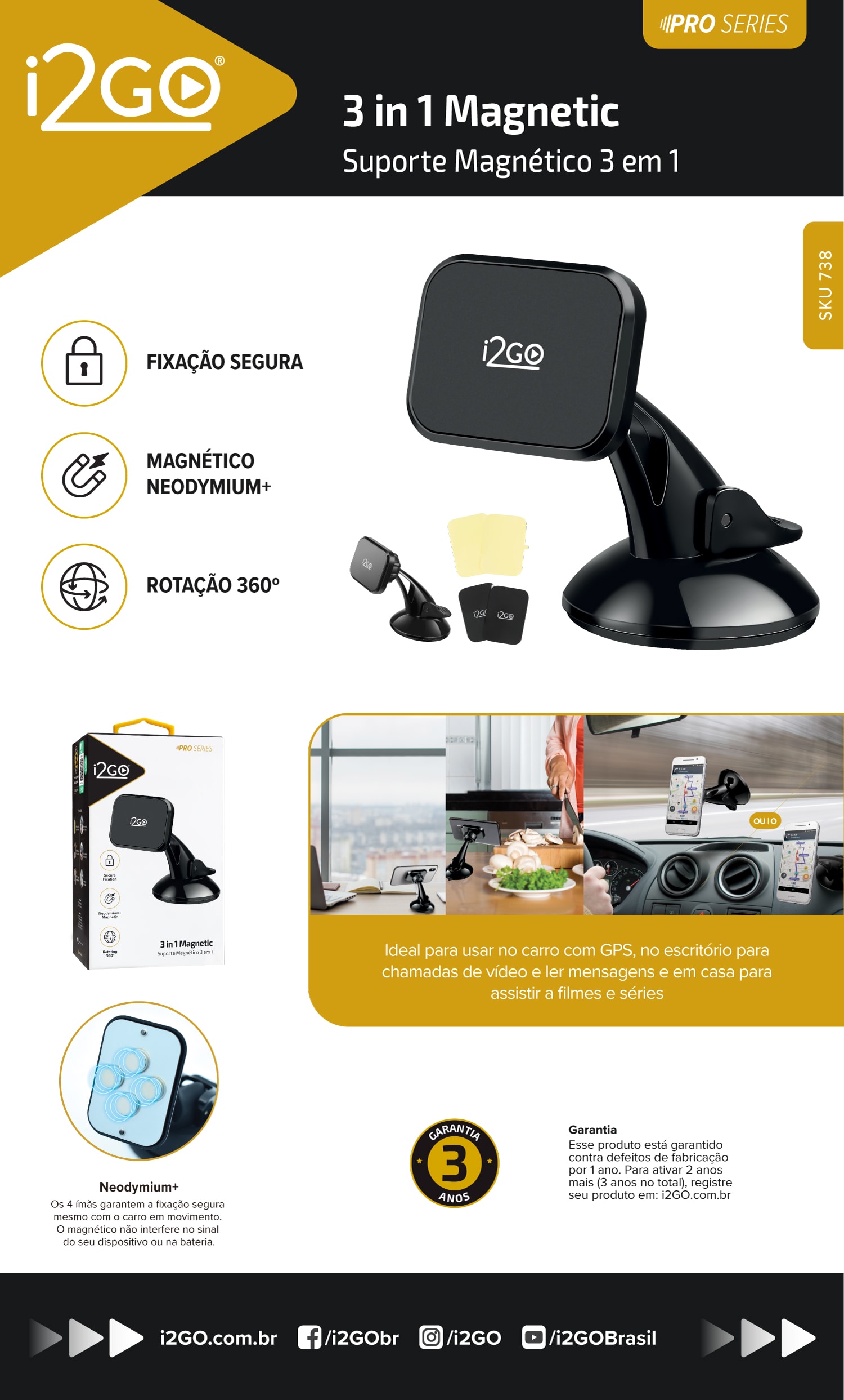 | Modelo: Suporte Veicular Magnetico 3 em 1 i2GO - i2GO PRO |